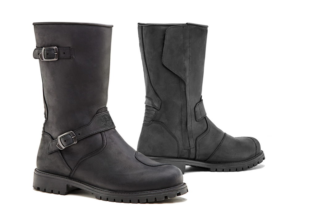 ESTERNO •Tomaia in pelle pieno fiore ingrassata / Suola personalizzata in gomma / Protezione cambio marcia / Chiusura con velcro e zip / Inserto reflex posteriore