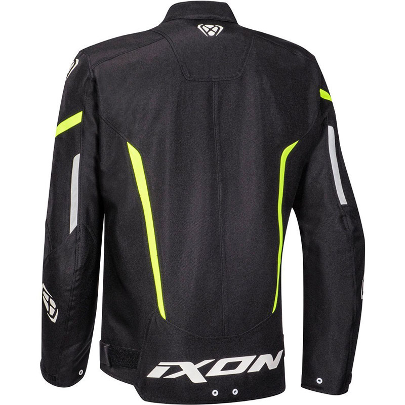 Imbottitura termica intera removibile, protezioni CE spalle e gomiti, tasca per paraschiena, bande riflettenti sul retro maniche, prese d’aria a zip sulle spalle.