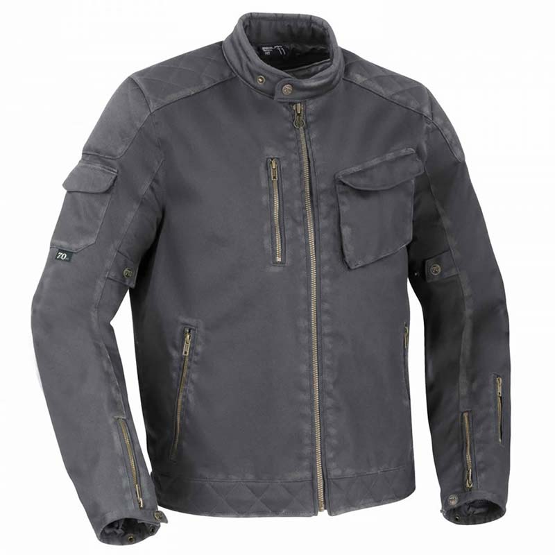 Giubbotto in robusto tessuto di un bellissimo effetto invecchiato, dettagli di pregio e taglio body fit.