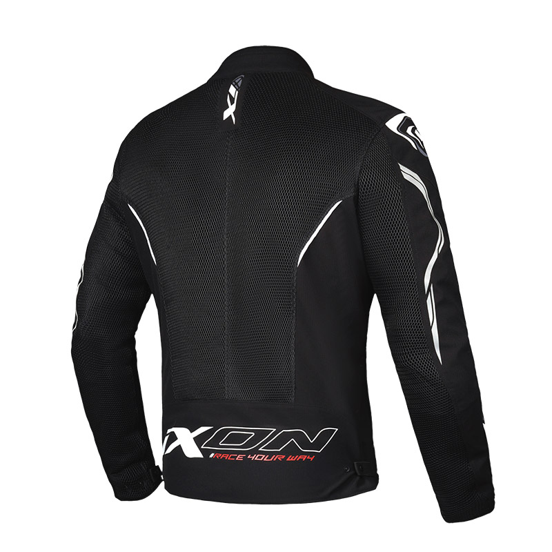 Giacca moto a 3 strati composta da imbottitura termica intera removibile , membrana impermeabile removibile e esterno in rete mesh estremamente ventilato .